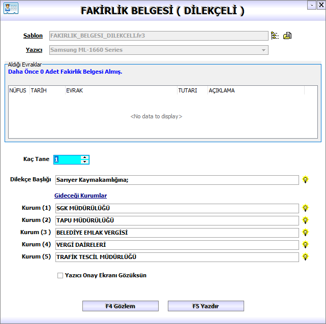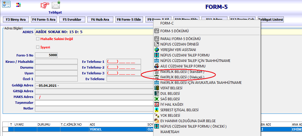 2) Yeni tip Fakirlik Belgesi eklendi ( Kaymakamlık Dilekçeli )