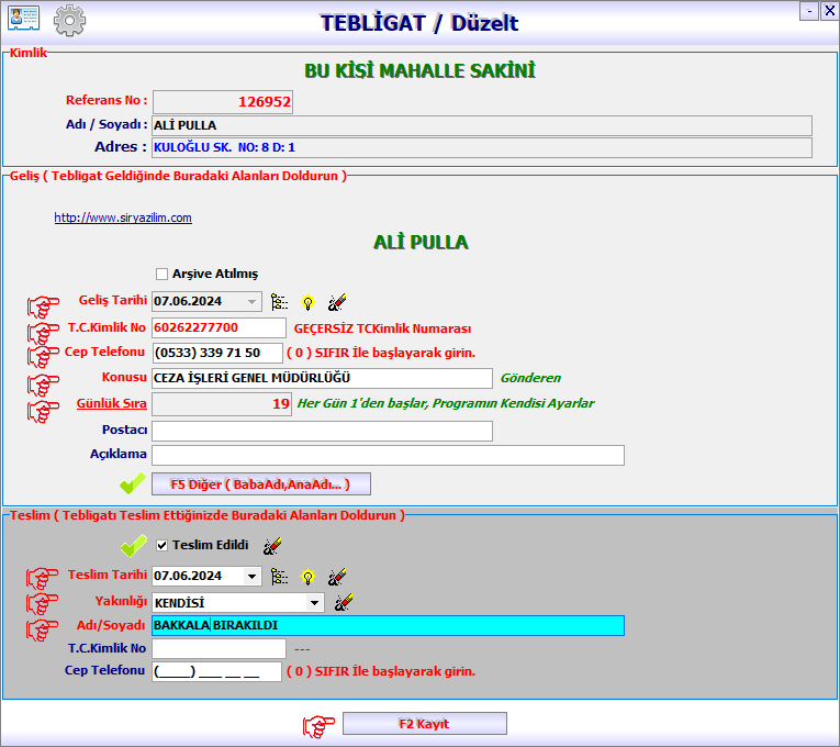 Tebligatını gelip aldığında teslim işlemlerini yapın.